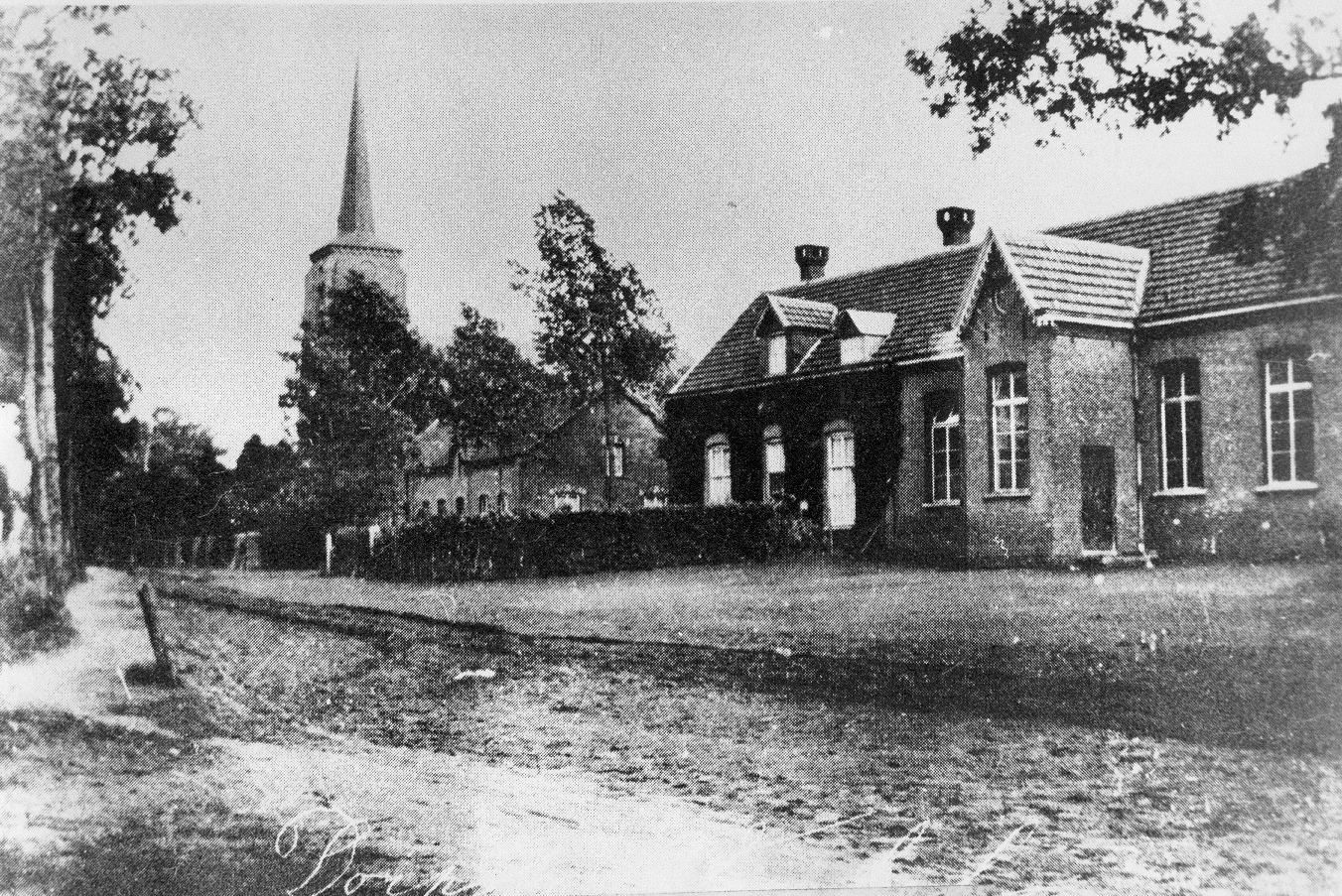 Dorpsstraat rond 1930 met school en kerk