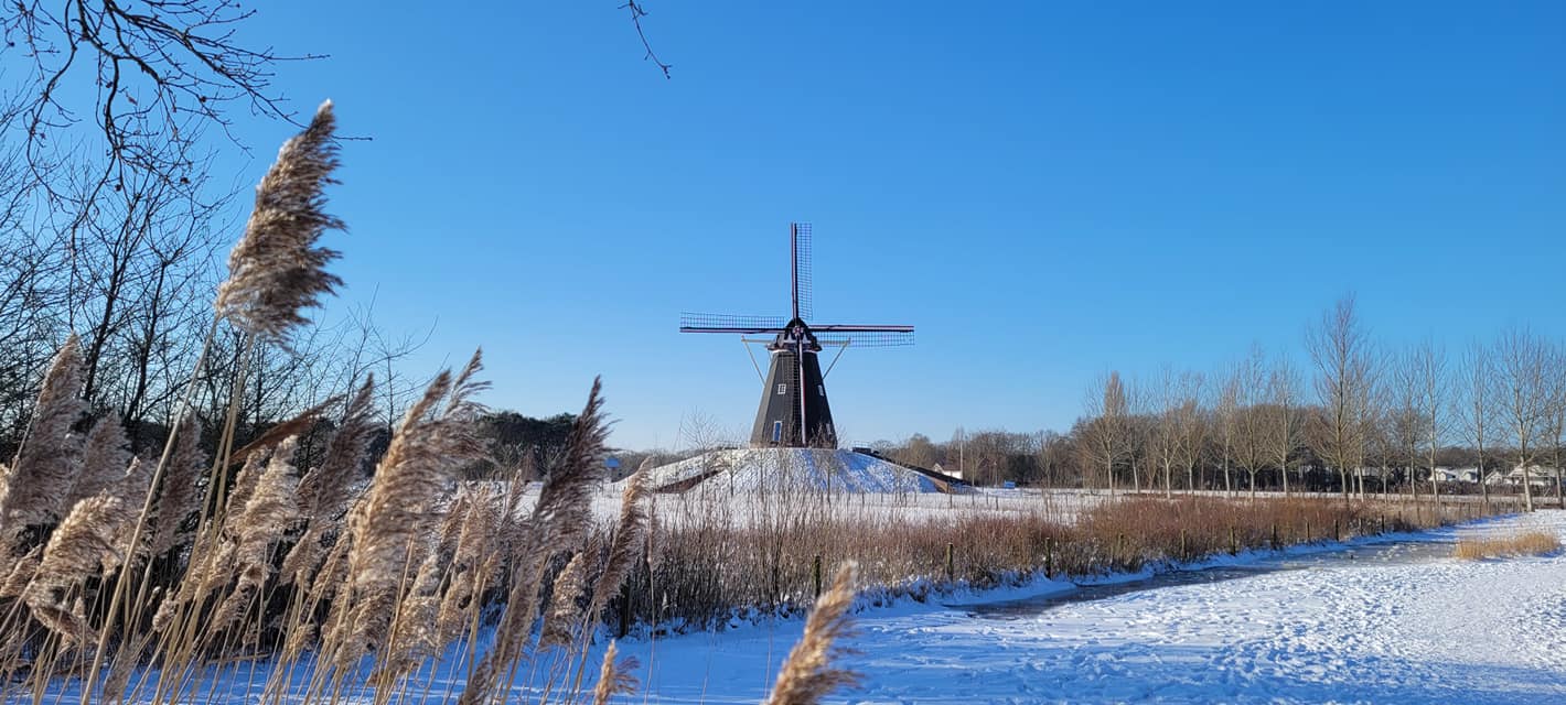 De Zwaan korenmolen Vinkel met op de achtergrond Lindenlaan (voorheen Vinkelsestraat)